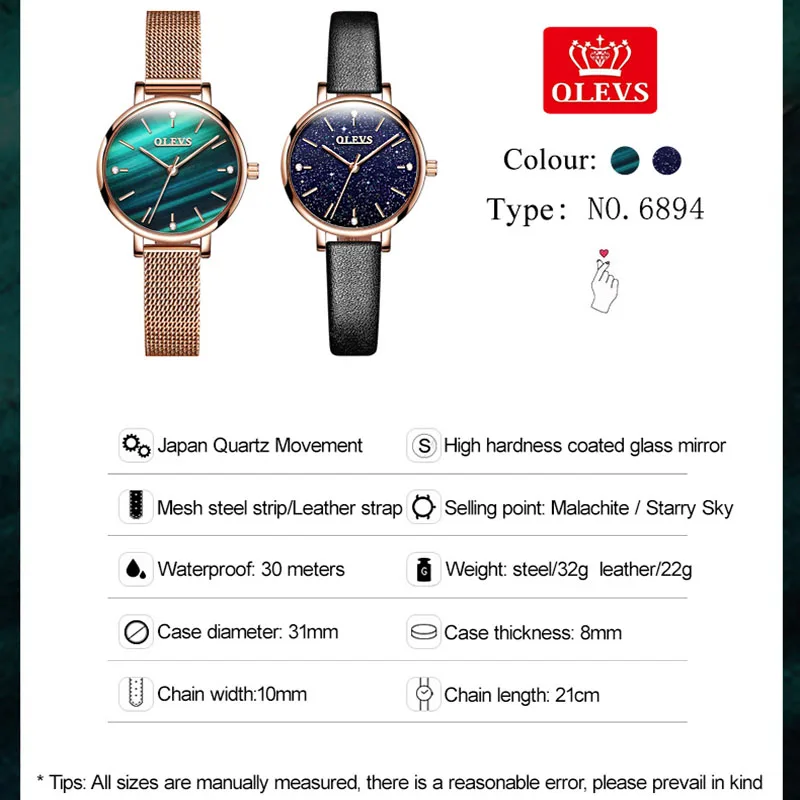 Get a 50% discount for Women's Gifts Malachite Women Watch Starry Rose Gold Mesh Waterproof Ladies Watches Luxury Brand re